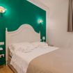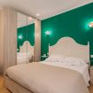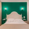 The master bedroom, with emerald green walls and soft lighting, combines design and comfort.